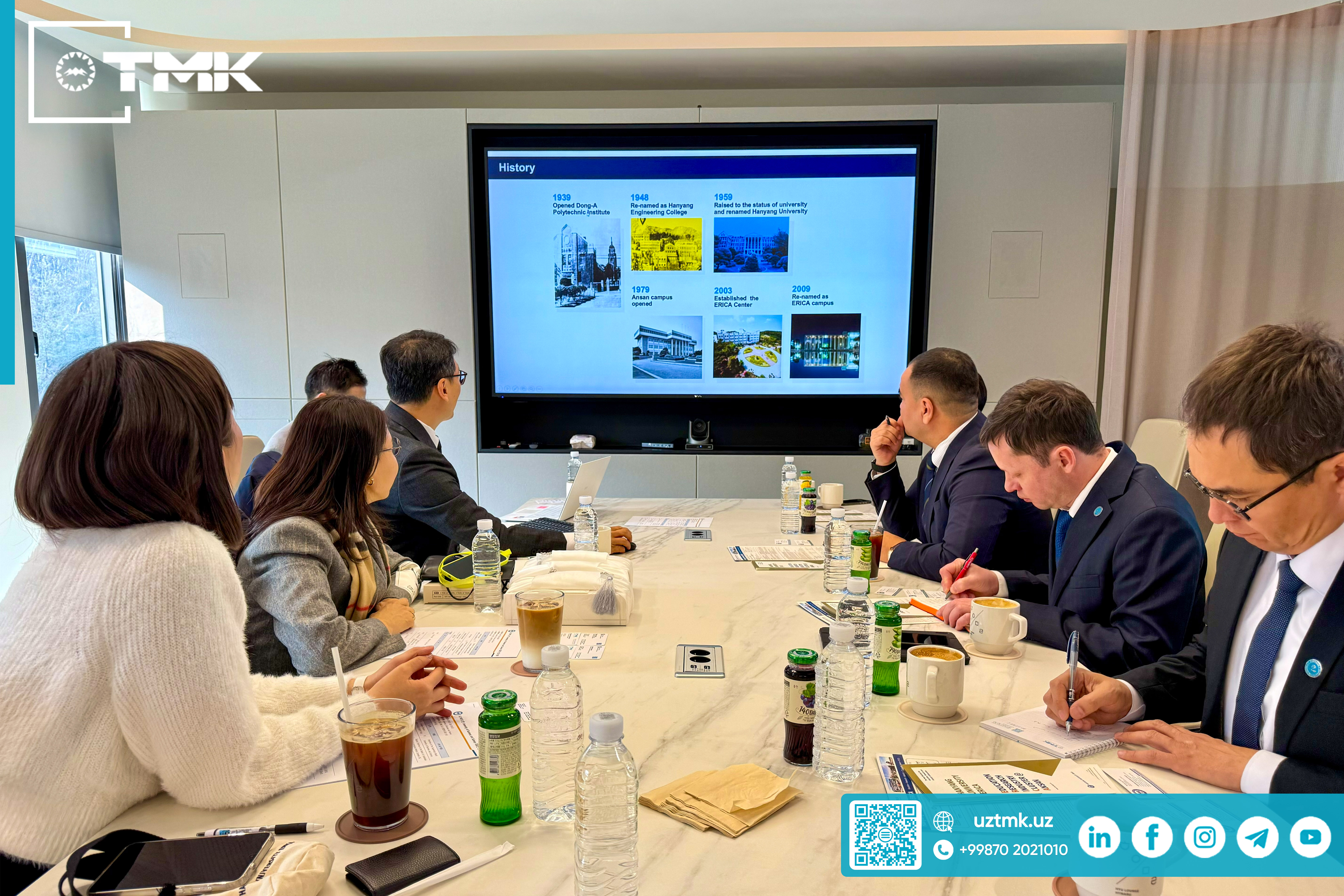 Janubiy Koreyaning nufuzli oliy ta’lim muassasalaridan biri — Hanyang Universitetining ERICA kampusida O‘zbekiston texnologik metallar kombinati hamda University of Business and Science (O'zbekiston) delegatsiyasi vakillari ishtirokida uchrashuv bo‘lib o‘tdi.